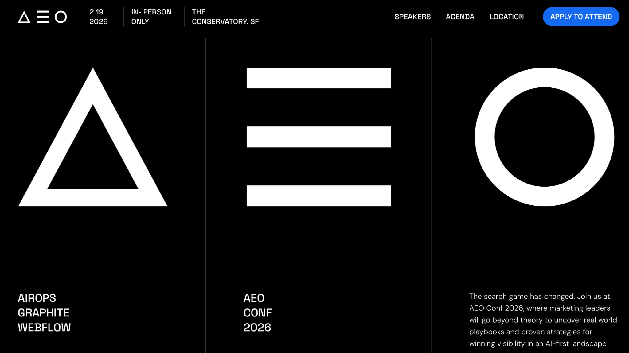 AEO Conf 是神奇发生的地方:来自顶尖公司的营销领袖齐聚一堂,分享在 AI 回答问题时赢得可见度的实际操作手册(不仅仅是理论!)。