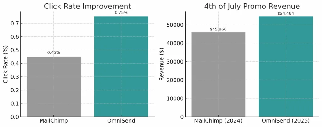 - 美国国庆日促销收入同比增长: $45,866 → $54,494(比上一年在 MailChimp 上高出 19%)